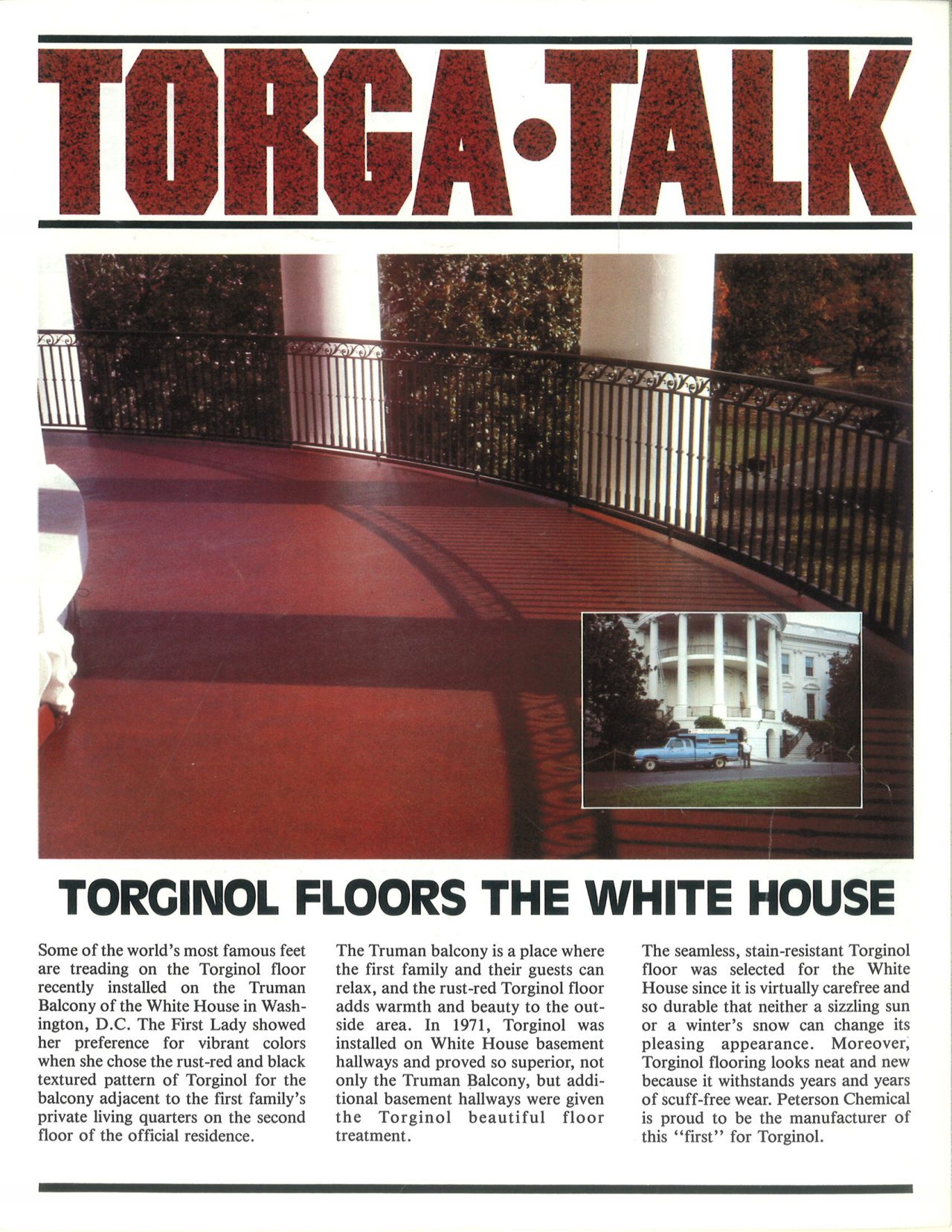 Peterson Chemical Corporation, a Sheboygan, Wisconsin based coating manufacturer, purchases the rights to the TORGINOL® trademark along with the technology for manufacturing resinous flooring systems and vinyl colored chips, or TORGA-CHIPSTM.