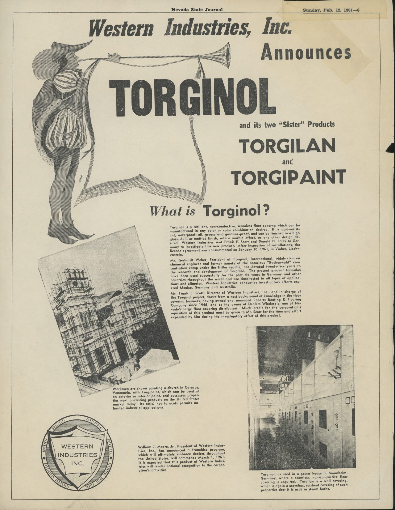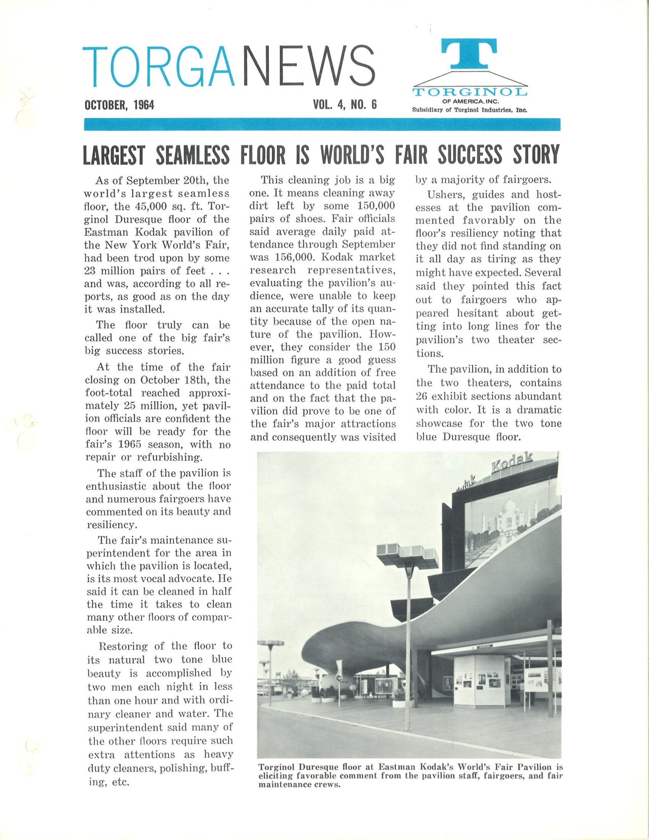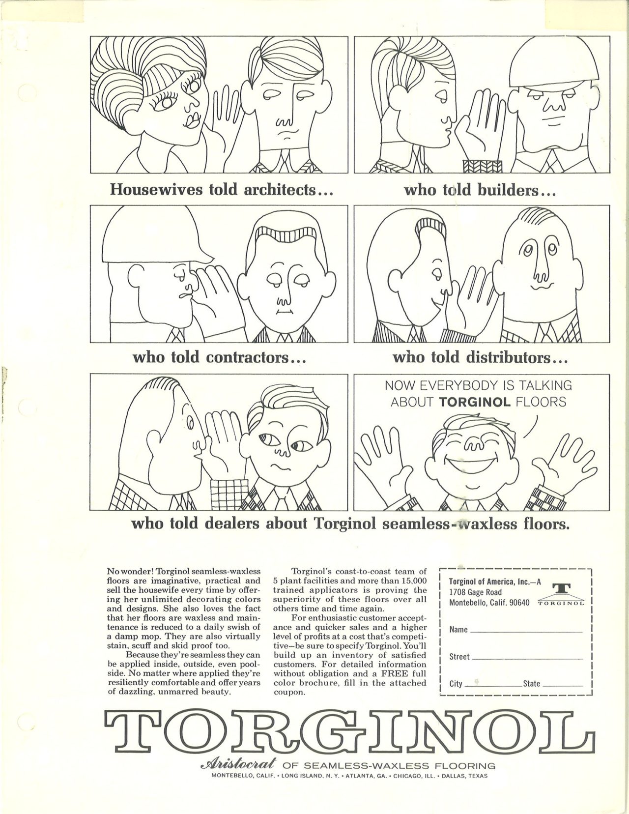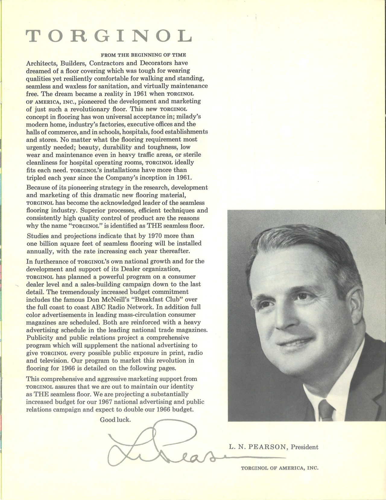 American entrepreneur, L.N. Pearson licenses the patented TORGINOL® technology from Germany under the name Torginol of America, Inc, pioneering the development and marketing of seamless resinous flooring in the United States.